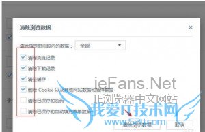 3、在打开的页面中的窗体中选择删除的数据类型,可以选择清除指定时间段内的数据,然后点击“清除浏览数据”按钮
