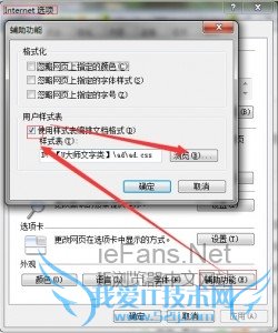 【二】打开IE浏览器的“Internet选项”,点击“辅助功能”,勾选“使用样式表”,选中下载到的ad.css,然后确定。