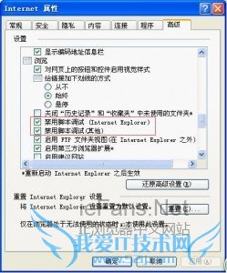 有些用户在用IE浏览网页时,弹出“出现运行错误,是否纠正错误”对话框,单机“是”按钮后关闭页面,单击“否”按钮后,可以继续上网浏览。虽无大碍,但是也让人觉得烦恼,为什么会出现这样的问题呢?一个可能是所浏览网站本身的问题,也可能是由于IE对某些脚本不支持。解决的方法很简单,在“开始”菜单里面进入“控制面板”选择“Internet选项”菜单,再选择“高级”选项卡,选中“禁止脚本调试”复选框,最后单击“确定”按钮即可。如图:<>