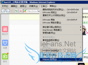 IE浏览器如何使用不当或者是遭到了恶意软件的破坏,浏览器也是会生病的,要么不显示图片,要么无法打开网页。出现这种情况的话可能有部分的朋友不会用正确的修复IE浏览器的方法,而是错误的选择重装IE浏览器。今天就跟小编来学习一下正确修复IE浏览器的方法吧。<>1、在IE浏览器点击“工具”选项卡,在弹出的下拉菜单中点击“Internet选项”;