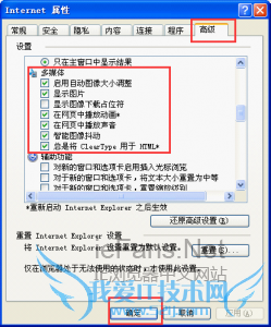 IE浏览器里有提供关闭系统图像、视频、视频、声音、动画、优化图像抖动等项目的功能,将这些功能的关闭能够加快浏览速度。<>操作起来很简单,我们只需执行“工具”菜单的“Internet选项”命令,打开“Internet选项”对话框,然后单击“高级”选项卡,最后从“多媒体”框中取消不需要显示的项目即可达到目的。还是有一定提升浏览速度的效果的。如图: