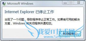 出现任何问题导致程序停止了正常的工作。如果有可用的解决方案,Windows都会用关闭程序并通知你。这样的问题虽然不大,但是会造成不