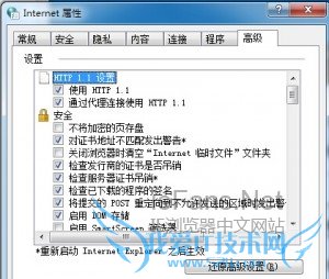 3.在桌面的IE浏览器图标上,鼠标右击打开“属性”,然后在对话框中的“高级”选项中,取消一下系统默认的选择: