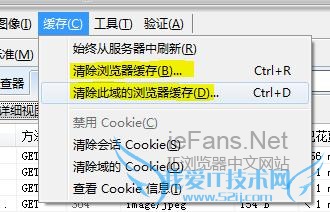 如果希望网页完全重新加载,可以单击开发人员工具栏的菜单,选择“清楚浏览器缓存”命令,或者选择“清除此域的浏览器缓存”,之后再刷新页面,网页就会完全通过服务器进行下载刷新了。