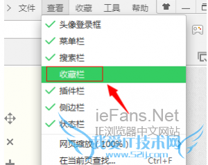 在查看的下拉菜单中找到“收藏栏”点击一下,如图: