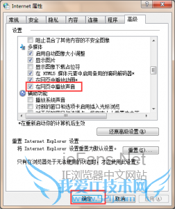 在高级选项中,向下拉动下拉条,找到在“网页中播放声音”选项。如图所示: