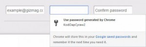 完成操作后,Chrome浏览器就能识别任何用户想要注册新账户的页面,用户可以像平常那样填写注册表单,当用户点击「选择密码」的选项框时,就会出现通知气泡和一个推荐的密码,用户可以选择使用这个推荐的密码或使用自己的密码。下次再登录这个网站的时候, Chrome会自动调用最初生成的密码,当然所有生成的密码会与Chrome浏览器同步。不过该功能还在试验性阶段。