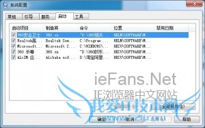 3.如果从开机CPU占用就过高,一直到关机,那么就有可能是电脑中的某个软件随系统启动就造成的。我们在电脑屏幕左下角的“开始”中找到“运行”,在对话框中输入“msconfig”,然后进入“启动”,在里面去掉认为可疑的选项的勾选,设置完成后重启电脑。反复操作,直到找到造成CPU占用过高的软件为止。