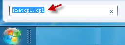 1、在开始搜索框中键入“inetcpl.cpl”,回车,打开“Internet 选项”窗口。