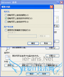 2、点击“辅助功能”,勾选“忽略网页上指定的字体样式”,确定退出。