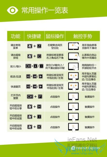 Metro版IE10常用操作的触控手势、鼠标操作和快捷键