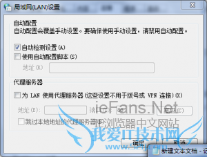 3、在局域网(LAN)设置里面去掉“自动检测设置”选项勾选,点击确定退出。