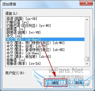 4. 在 [添加语言] 中,从列表中选取语言,再单击 [确定]。