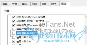 在安全选项的设置里面,禁用掉“启用增强保护模式”一项(去掉前面的勾),如图。