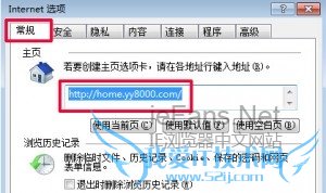 2.在“常规”选项中的主页里,输入你所需要设置成主页的网页的网址。如果需要输入多个网址,则在前一个网址后按回车,然后再输入另一个网址。