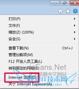 1.在IE7浏览器中的工具栏中找到“Internet选项”。<>