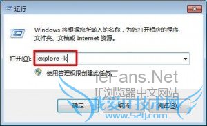 在电脑桌面中的“开始”里找到运行,在其中输入“iexplore -k”(注意-k前有个空格),点击确定。