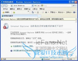 单击“开始” →“所有程序”→“附件”→“系统工具”→“Internet Explorer (无加载项)”,打开IE无加载模式后看问题是否得到解决。