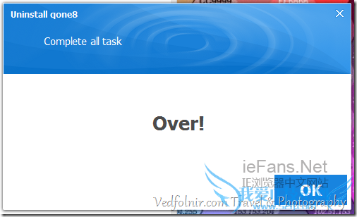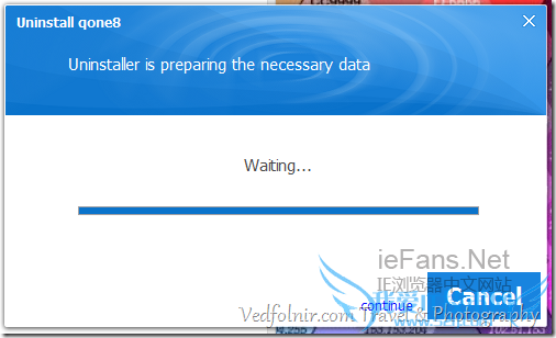 运行移除命令后,会出现 Qone8 的对话窗口,可在下面图三至图六中看到连续的软件操作。最后,移除工具便会将 Qone8 自系统解除安装。
