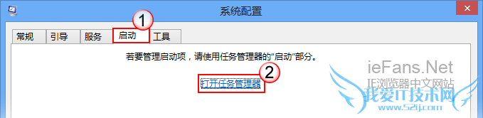 - 在“系统配置”对话框的“启动”选项卡上,单击“打开任务管理器”。
