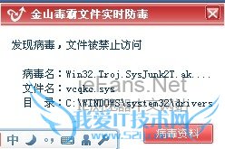 故障现象:1.金山毒霸王报如下 :