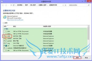 3、出现设置程序关联的窗口,在列表中找到“.mht”,将其勾选,然后点击“保存”。