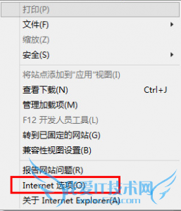 1、打开IE浏览器,点击设置,选择“Internet选项”;
