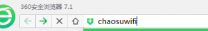 当我们需要快速输入这个网址的时候,我们只需在浏览器的地址栏中输入“chaosuwifi”即可,然后按住“ctrl”和“enter”键,这时就会自动在单词前方加入“http://www.”,在单词后方自动加入“.com”,然后直接进入到该网页。