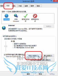 每次都弹出这个其实是有点烦的,那么如何解决这个问题呢,小编给你支个招。打开Internet选项,在进入“安全”选项卡,然后选择“自定义级别”按钮,如图: