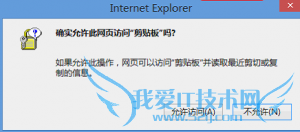 欢迎您访问我爱IT技术网,今天小编为你分享的是IE技巧方面的电脑教程:【如何去除IE及IE内核浏览器剪贴板操作的警告】,平时在使用IE浏览器上网的时候,总会遇上这或那的问题,那本文就针对这些日常的问题收集并整理成IE技巧分享给大家!