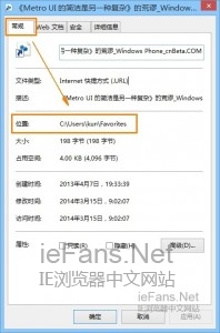 2、接着切换到“常规”选项卡,位置一栏便是收藏夹的所在位置。复制该路径,然后粘贴到IE地址栏打开即可。