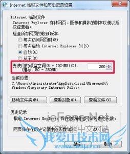 3.然后设置“要使用的磁盘空间”,如果浏览的网页较为固定,就设置大些。浏览网页较为随意,就可设置小些。