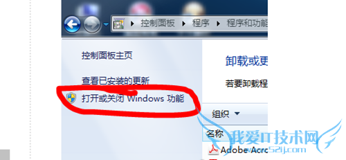 3、在打开的“程序和功能”页,点击左侧的“打开或关闭windows功能”;