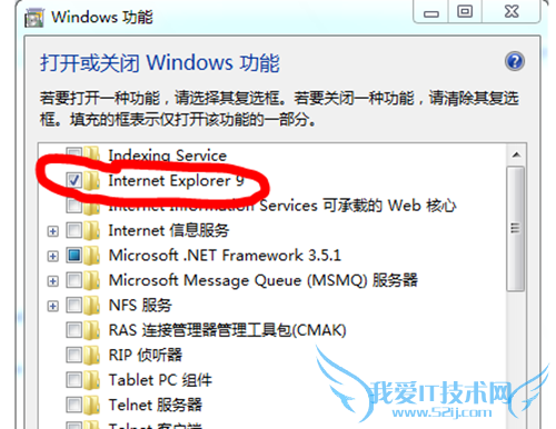 4、打开后,找到“Internet Explorer 9”,这就是我们要卸载的IE浏览器,取消选择前面方框的对钩;