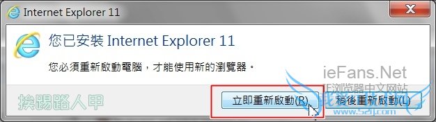 ▼完成后会先要求重新启动,建议按下“立即重新启动”来重新开机。