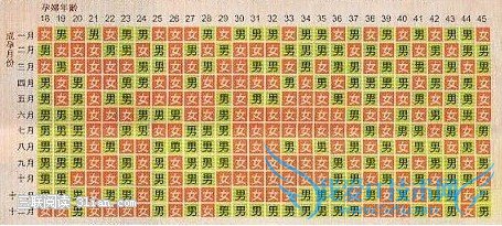 2.出生年月+9个月的农历虚龄为25岁,受孕月份在农历3月预测生男孩,受孕月份在农历5月份预测生女孩;