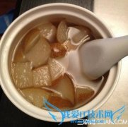 白梨挖去核心,将其他三味同放梨内,盖好扎紧放碗中,隔水炖熟.服食.