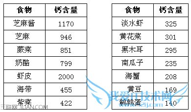 10种含钙量较高的食物一览表(数值为每100克食物中含钙的毫克数)