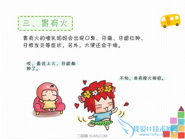 哺乳期妈妈还要弄清楚上的火是什么样的火,比如是肺热、胃、心火,胃火可以有胃疼、大便干、口臭等症状,肺火可以有咯血、咳嗽、黄痰等症状,肝火会有一些烦躁、失眠、女性会有乳房胀痛,心火就会心悸失眠、心烦。了解清楚哺乳期上火的具体类型,才能对症下药。