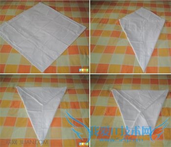 第三步:再对折已对折好的尿布呈正方形,使可掀开四层的角处于右上方。
