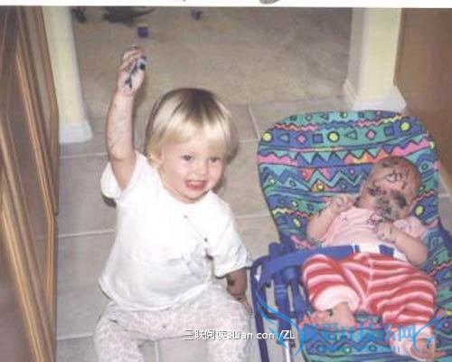 Hi,爸爸妈妈,看见没有,看见没有,我的杰作也,你看弟弟都被我的丹青妙笔给画得老漂亮了哟!呵呵,笑死啦,都涂成黑鬼了,你叫我以后怎么出去见人呢?