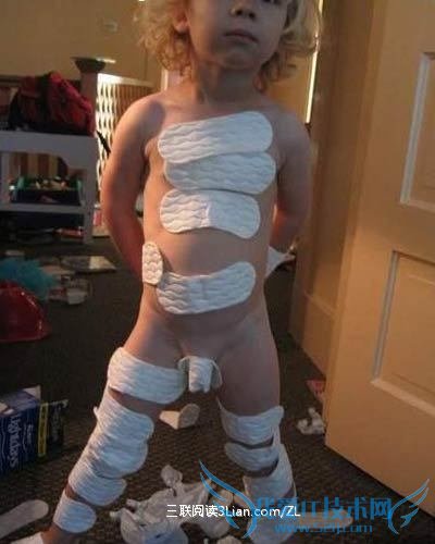 第一次接触尿片很兴奋嘛,涂得满满的一身,大家看看,是不是很有创意呀,以后用不了的尿片就这么玩哈,呵呵!