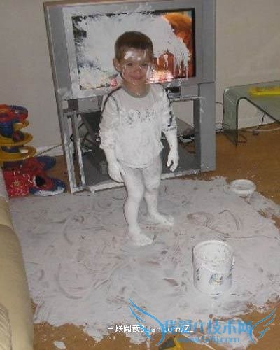 油漆哗啦啦的,从地板涂满全身,再到电视,哪儿好涂往那涂,像个活脱脱的小泥鳅似的,家有这样的宝宝,你会觉得是很受伤了,还是会觉得很无辜呢?好好的一个干净整洁的家,碰上调皮捣蛋的宝宝,你还hold得住吗?