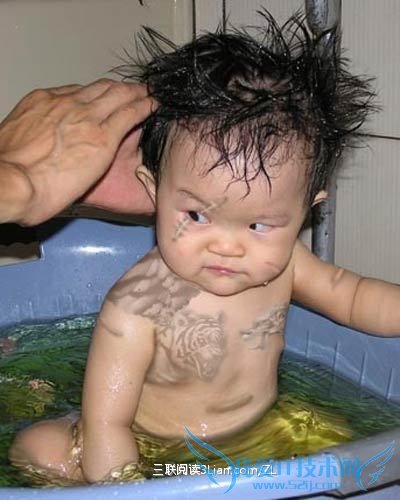 干嘛啊小子,你敢碰我试试啊?我左青龙,右白虎,老牛在腰间,我是纹身帝我怕谁,啊哈哈,给这样的宝宝洗澡,要注意咯,以免被他犀利的眼神杀死,被他有型的纹身吓死,很酷很有fans哦!
