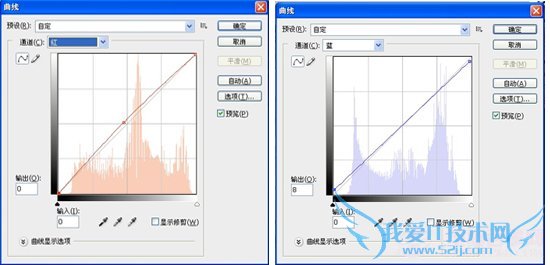 第二步 3、执行--图象--调整--曲线--红/蓝调整--参数如下图