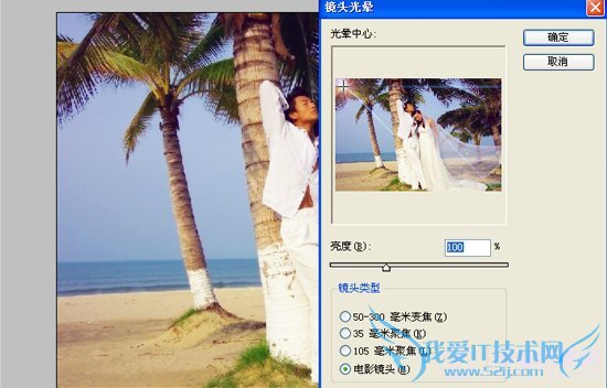 第五步 6、合并图层--执行滤镜--渲染--镜头光晕--具体数值如下