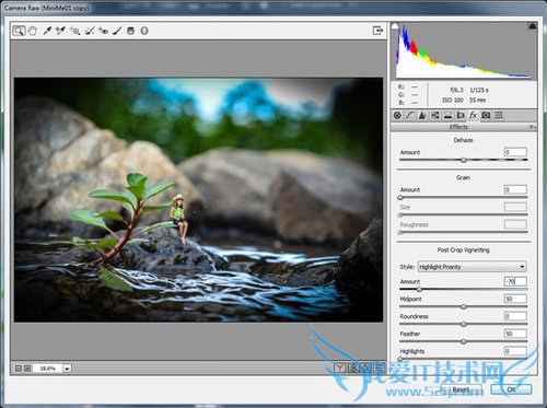 然后切换到效果选项,设置裁剪后晕影,数量为-70,设计出一个漂亮的边角加暗效果。