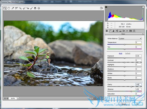 是时候加点梦幻效果了。选择“滤镜> Camera Raw 滤镜”,在基础选项中设置透明度和抖动的控制值为40。