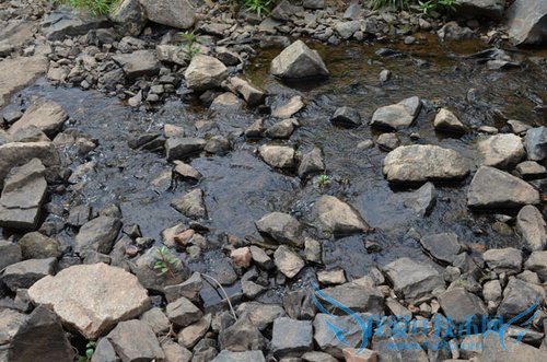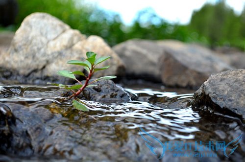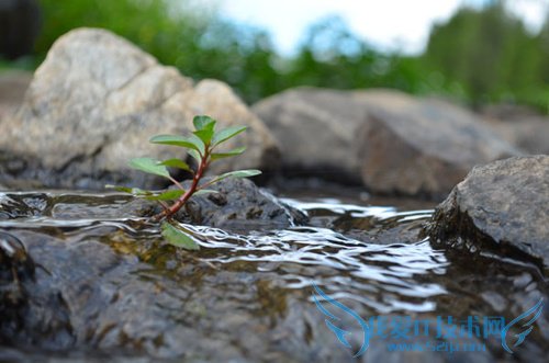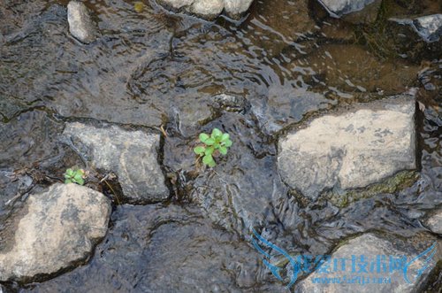先走到溪边瞧瞧,看看有啥之前过错但非常有趣的地方。然后就发现了一个从岩石中生长起来的绿叶植物,这植物独立水中,看起来挺有意境的。