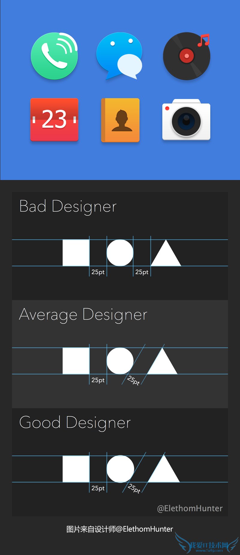 END:用相同的方法跟技巧完成整套主题图标,应该注意整体的一些细节(图片来自设计师@ElethomHunter),因为这套主题是不规则形状的,形状上无法统一,整体视觉细节效果应更加谨慎细腻。